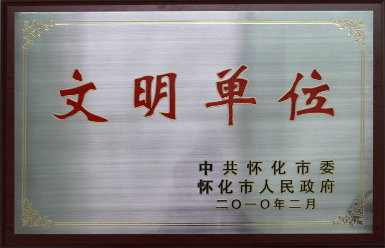 2010年2月华体会手机网页版被中共怀化市委、市人民政府评为“文明单位”